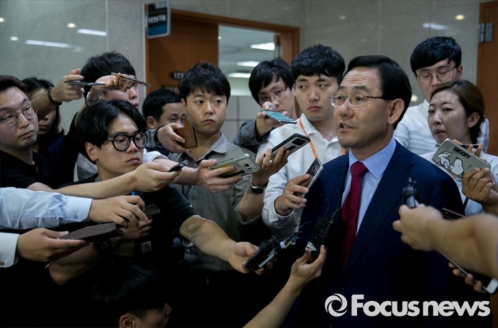 | △ 취재진 앞에 선 주호영 의원 |