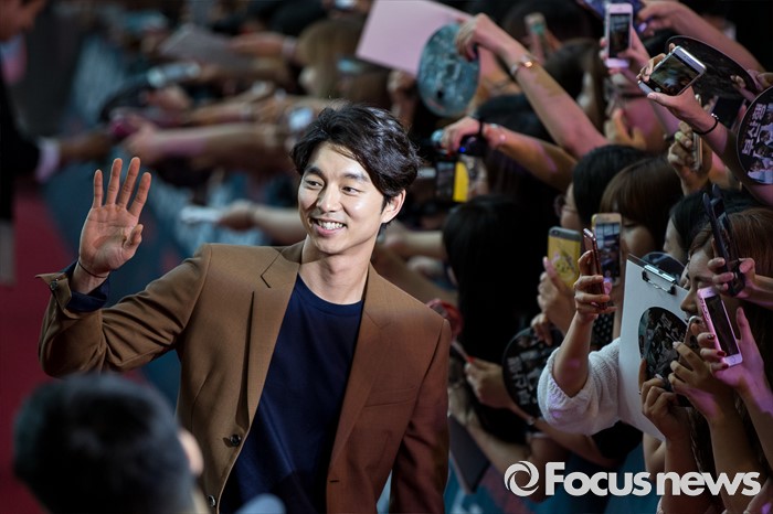 (서울=포커스뉴스) 18일 오후 서울 영등포구 타임스퀘어에서 열린 영화 '부산행' 레드카펫 행사에 참석한 배우 공유가 팬들에게 인사하고 있다.