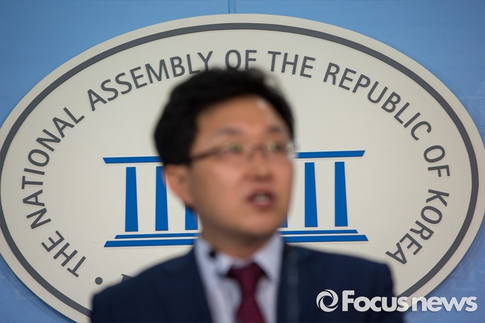 (서울=포커스뉴스) 김용태 새누리당 의원이 19일 오전 서울 여의도 국회에서 윤상현 의원의 공천개입 의혹 관련 입장발표를 하고 있다.