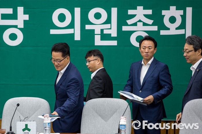 (서울=포커스뉴스) 박지원(왼쪽) 국민의당 비상대책위원장과 김성식(오른쪽) 정책위의장이 19일 오전 서울 여의도 국회에서 열린 의원총회에 참석하기 위해 회의실로 들어서고 있다.