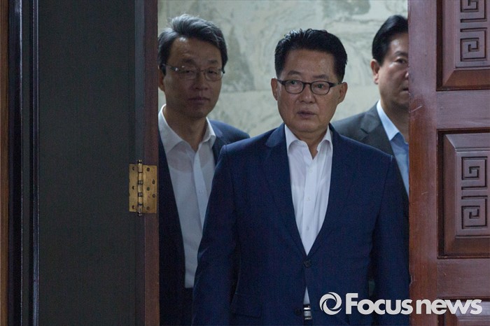 (서울=포커스뉴스) 박지원(가운데) 국민의당 비상대책위원장과 김성식 정책위의장이 19일 오전 서울 여의도 국회에서 열린 의원총회에 참석하기 위해 회의실로 들어서고 있다.