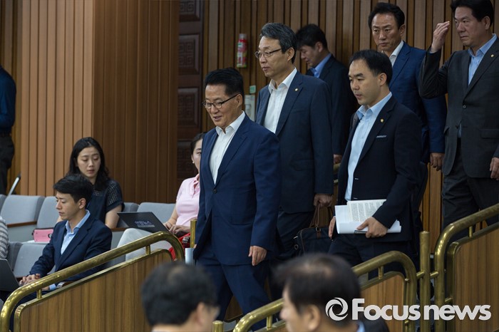 (서울=포커스뉴스) 박지원 국민의당 비상대책위원장이 19일 오전 서울 여의도 국회에서 열린 의원총회에 참석하기 위해 회의실로 들어서고 있다.