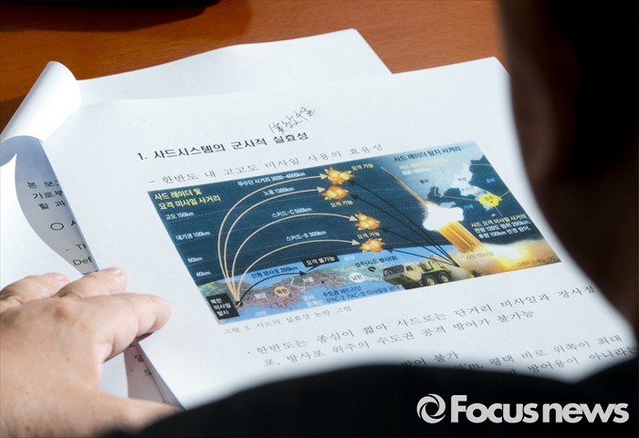 (서울=포커스뉴스) 19일 오전 서울 여의도 국회에서 열린 더불어민주당 사드대책위원회의에 참석한 한 의원이 자료를 살펴보고 있다.
