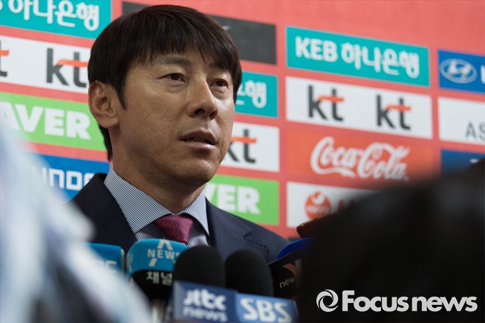 | △ 출국 전 취재진 질문 답하는 신태용 감독 |