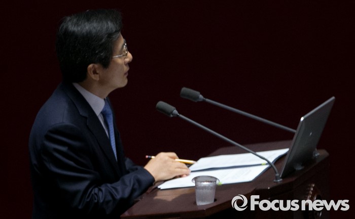 (서울=포커스뉴스) 19일 오전 서울 여의도 국회에서 열린 344회 국회(임시회) 1차 본회의, 사드(THAAD·고고도미사일방어체계) 배치에 대한 긴급현안질문에 참석한 황교안 국무총리가 윤영석 새누리당 의원의 질문에 답하고 있다.