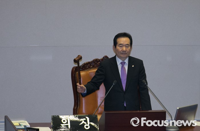 (서울=포커스뉴스) 19일 오전 서울 여의도 국회에서 열린 344회 국회(임시회) 1차 본회의, 사드(THAAD·고고도미사일방어체계) 배치에 대한 긴급현안질문에 참석한 정세균 국회의장이 개의 선언을 하고 있다.
