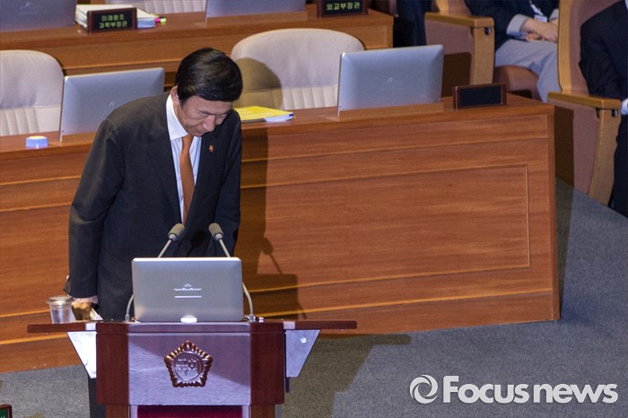 (서울=포커스뉴스) 윤병세(오른쪽) 외교부 장관이 19일 오전 서울 여의도 국회에서 열린 제344회 국회(임시회) 1차 본회의, 사드(THAAD, 고고도미사일방어체계) 배치에 대한 긴급현안질문에 참석해 의원 질의에 답하기 전 인사 하고 있다.