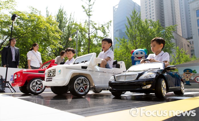 (서울=포커스뉴스) 19일 오전 서울 송파구 어린이 교통안전교육장에서 어린이들이 모바일키즈 프로그램을 통해 교통안전교육을 체험하고 있다. 메르세데스-벤츠 사회공헌위원회와 도로교통공단은 지난 2015년부터 1년 7개월여 동안 어린이교통공원을 개보수 지원했다.