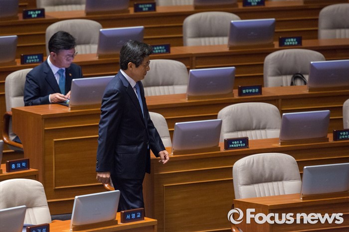 (서울=포커스뉴스) 황교안 국무총리가 19일 오전 서울 여의도 국회에서 열린 제344회 국회(임시회) 1차 본회의, 사드(THAAD, 고고도미사일방어체계) 배치에 대한 긴급현안질문에 참석하기 위해 본회의장으로 들어서고 있다.