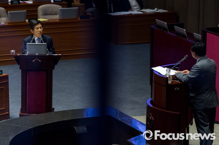 (서울=포커스뉴스) 황교안 국무총리가 19일 오전 서울 여의도 국회에서 열린 제344회 국회(임시회) 1차 본회의, 사드(THAAD, 고고도미사일방어체계) 배치에 대한 긴급현안질문에 참석해 설훈 더불어민주당 의원 질의에 답하고 있다.