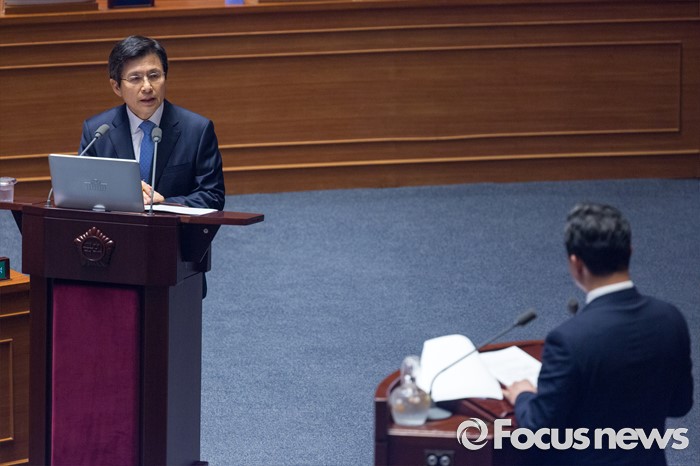 (서울=포커스뉴스) 황교안 국무총리가 19일 오전 서울 여의도 국회에서 열린 제344회 국회(임시회) 1차 본회의, 사드(THAAD, 고고도미사일방어체계) 배치에 대한 긴급현안질문에 참석해 의원 질의에 답하고 있다.