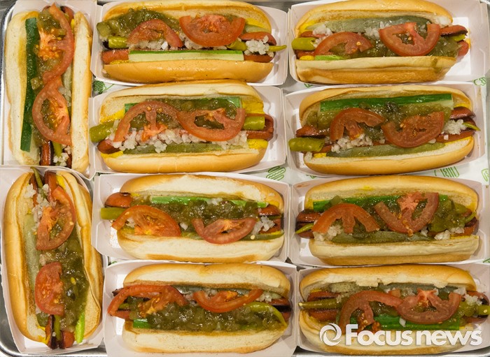 (서울=포커스뉴스) 19일 오전 서울 강남구 쉐이크쉑 강남점에서 열린 미디어 프리젠테이션 행사에서 Shack-cago Dog가 공개되고 있다.