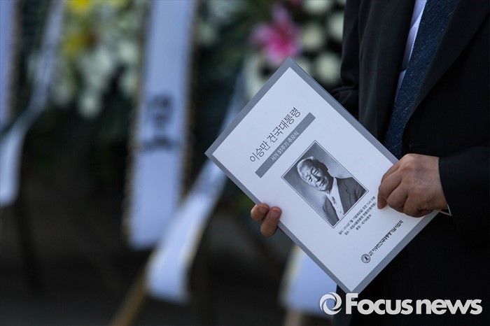 (서울=포커스뉴스) 19일 오전 서울 동작구 국립현충원 현충관에서 우남 이승만 전 대통령 51주기 추모식이 열리고 있다.