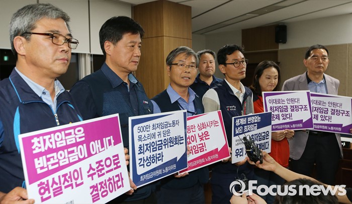 (서울=포커스뉴스) 최저임금위원회 노동자위원 9명 전원이 최저임금을 결정하는 방식의 구조적 한계를 개선하겠다며 사퇴를 결정했다.