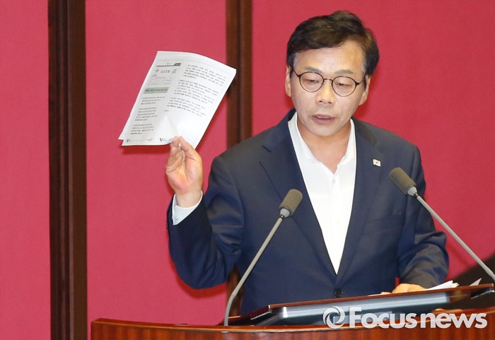 | △ 국방부 보도자료 들고 발언하는 이완영 의원 |