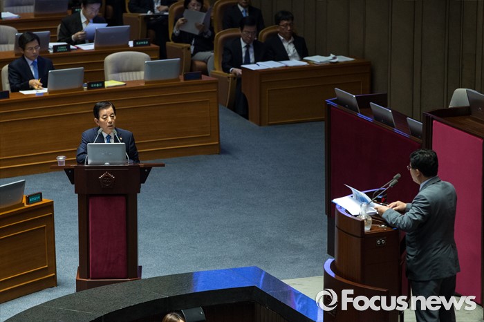 | △ 사드배치 관련 질의응답하는 한민구 국방부 장관 |