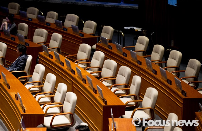 (서울=포커스뉴스) 19일 오후 서울 여의도 국회에서 열린 344회 국회(임시회) 1차 본회의, 사드(THAAD·고고도미사일방어체계) 배치에 대한 긴급현안질문에 불참한 의원들의 빈 자리가 보이고 있다.