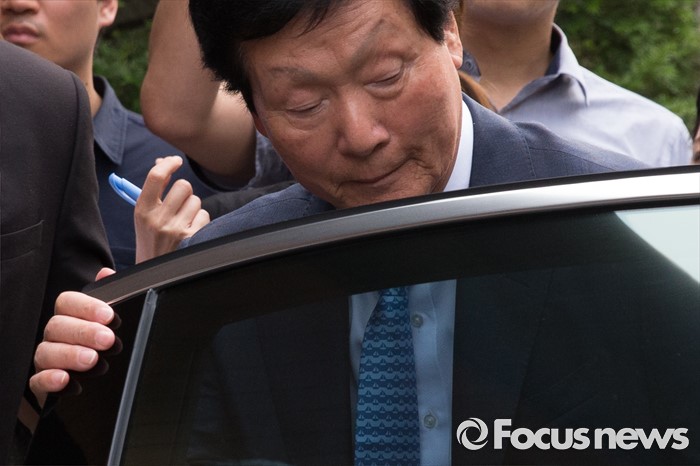 (서울=포커스뉴스) 신준호 푸르밀 대표이사 회장이 19일 오후 고(故) 신진수 씨의 제사를 위해 서울 성북구 신동주 전 일본 롯데홀딩스 부회장의 자택에 도착해 차에서 내리고 있다.