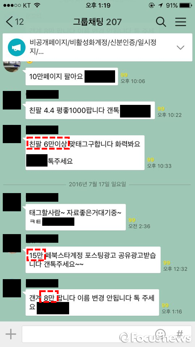 또한 박 홍보총괄은 "프로그램을 통해 찾지 못하는 것들은 저작권 보유자의 신고 없이는 조치를 하기 어렵다"며 "저작권 침해 신고가 들어오면 신고자에게 저작권 보유자에게 직접 알려달라 부탁한다. 저작권자가 직접 신고를 하면 우리가 조치할 수가 있다"며 어려움을 토로했다.거래자들의 단톡방에 올라오는 거래글. '1만'은 하나의 기준일 뿐, 그보다 훨씬 큰 수의 계정들도 매물로 나오고 있다.페이스북 계정 키우기에 사용되는 불법프로그램의 판매글(좌)과 프로그램의 모습(우).쉴 새 없이 새 글이 올라오는 거래자들의 '단톡방'. 많게는 300여명이 참여한 단톡방도 있다.