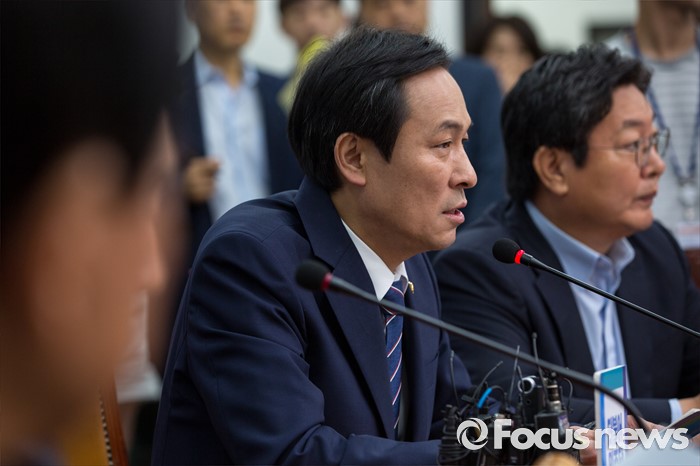 (서울=포커스뉴스) 우상호 더불어민주당 원내대표가 20일 오전 서울 여의도 국회에서 열린 비상대책위원회의에 참석해 모두발언 하고 있다.