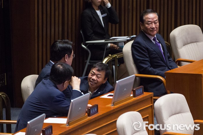 (서울=포커스뉴스) 새누리당 8.9 전당대회 불출마를 선언한 서청원 의원이 20일 오전 서울 여의도 국회에서 열린 344회 국회(임시회) 2차 본회의, 사드(THAAD, 고고도미사일방어체계) 배치에 대한 긴급현안질문에 참석해 정진석 원내대표를 바라보고 있다.