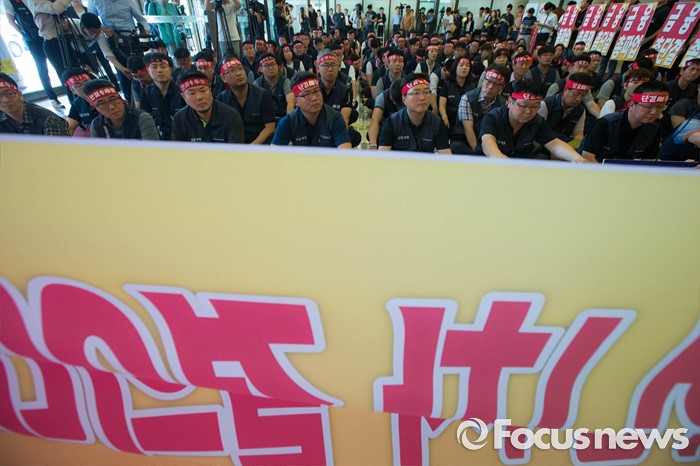 (서울=포커스뉴스) 20일 오전 서울 중구 은행회관에서 금융노조의 '성과연봉제 도입 관련 총파업 1차 결의대회' 가 열리고 있다.