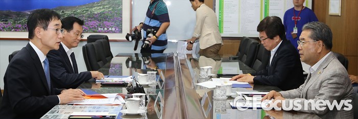 (세종=포커스뉴스) 이준식 사회부총리 겸 교육부장관이 20일 오후 세종시 정부세종청사 교육부 접견실에서 새롭게 구성된 전국시도교육감협의회 회장단과 간담회를 갖고 있다.