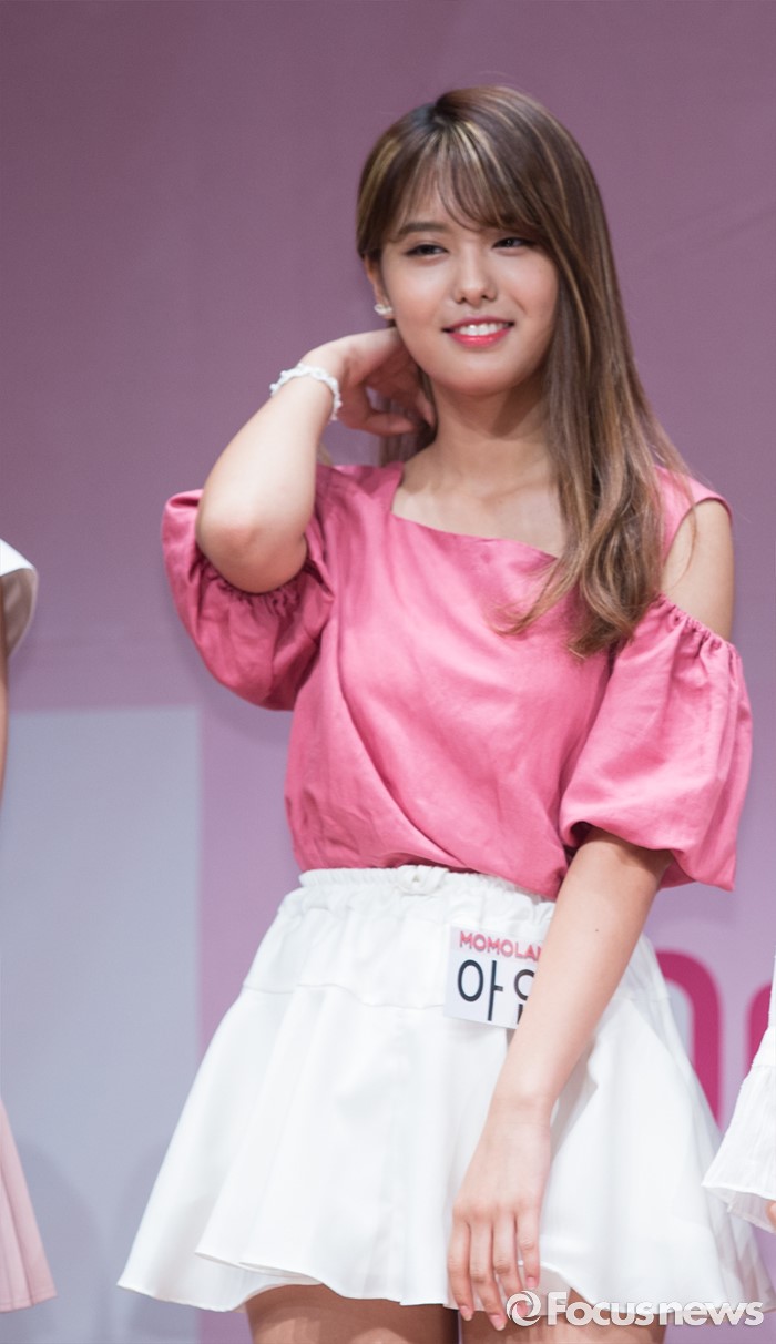 (서울=포커스뉴스) 20일 오후 서울 마포구 누리꿈스퀘어에서 열린 Mnet '서바이벌 모모랜드를 찾아서' 제작발표회에 참석한 연습생 아인이 미소를 짓고 있다.