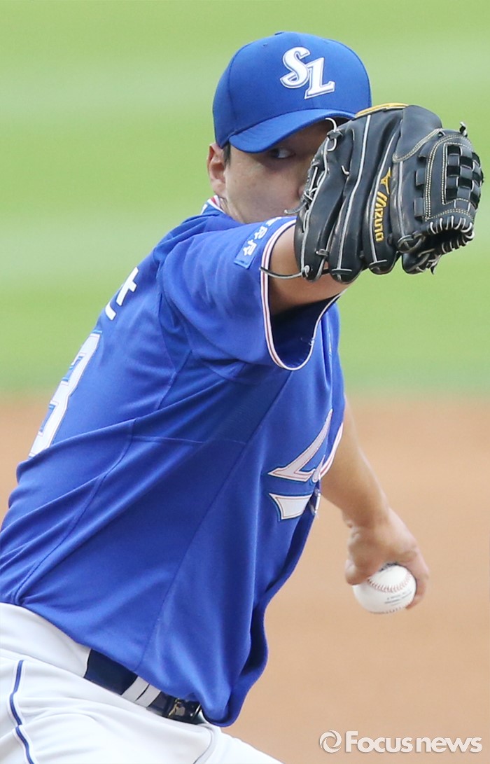 (서울=포커스뉴스) 20일 서울 잠실구장에서 열린 2016 프로야구 삼성-두산 경기에서 1회말 삼성 선발투수 차우찬이 투구하고 있다.