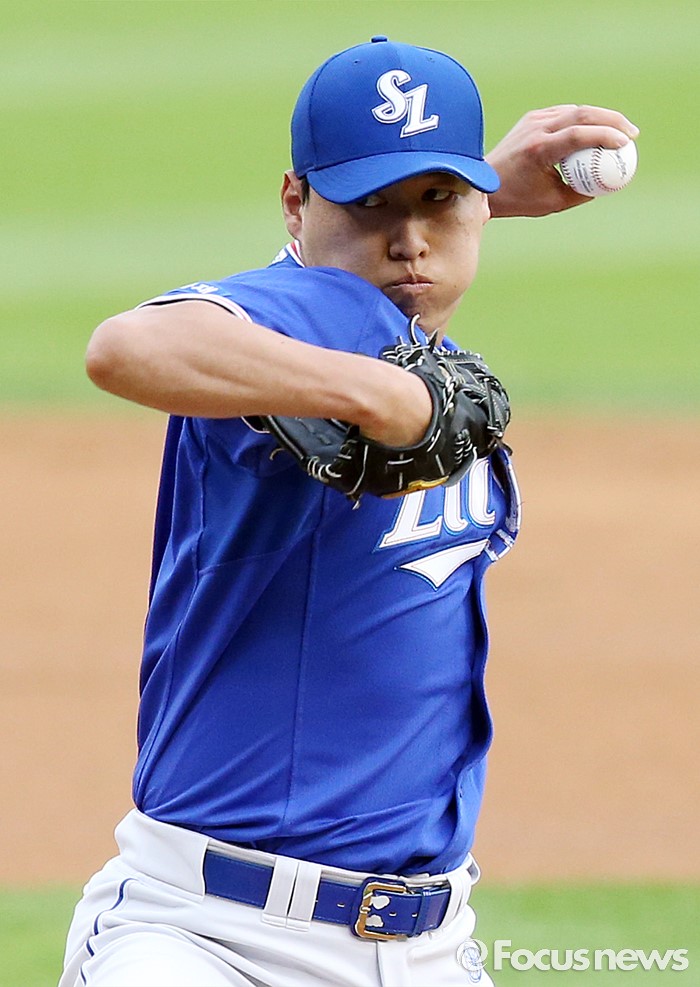 (서울=포커스뉴스) 20일 서울 잠실구장에서 열린 2016 프로야구 삼성-두산 경기에서 1회말 삼성 선발투수 차우찬이 투구하고 있다.