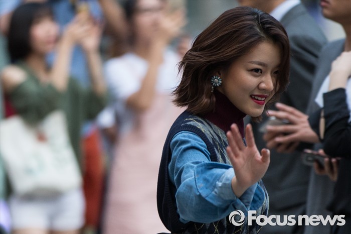 (서울=포커스뉴스) 20일 오후 서울 강남구 청담동 미우미우(Miu Miu) 부티크에서 열린오픈 기념 포토월 행사에 참석한 배우 고아성이 팬들에게 인사하고 있다.