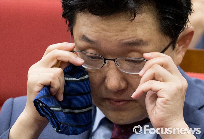 (서울=포커스뉴스) 21일 오전 서울 여의도 국회 의원회관에서 열린 퓨처라이프포럼 2기 출범식 및 세미나에 참석한 김용태 새누리당 의원이 안경을 고쳐쓰고 있다.