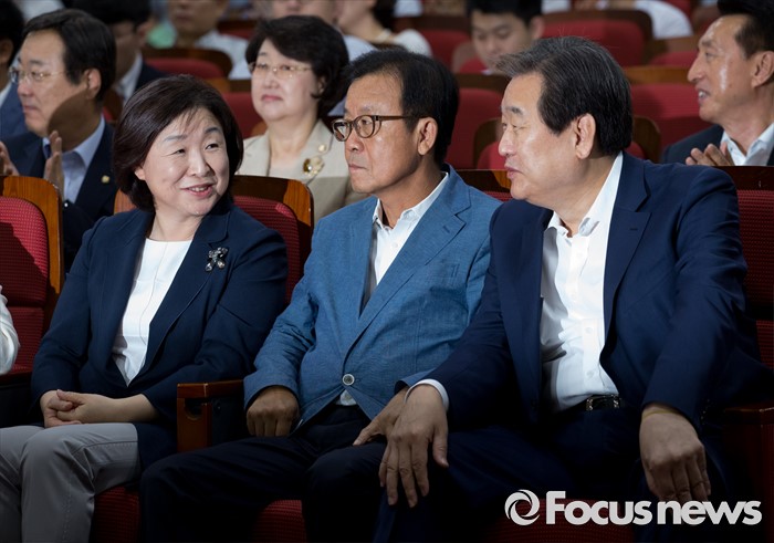 (서울=포커스뉴스) 21일 오전 서울 여의도 국회 의원회관에서 열린 퓨처라이프포럼 2기 출범식 및 세미나에 참석한 김무성(오른쪽부터) 새누리당 전 대표, 원혜영 더불어민주당 의원, 심상정 정의당 상임대표가 대화하고 있다.