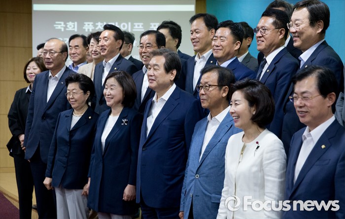 (서울=포커스뉴스) 21일 오전 서울 여의도 국회 의원회관에서 열린 퓨처라이프포럼 2기 출범식 및 세미나에 참석한 김무성 새누리당 전 대표, 원혜영 더불어민주당 의원, 심상정 정의당 상임대표 등 의원들이 기념촬영을 하고 있다.