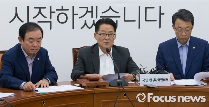 (서울=포커스뉴스) 21일 오전 서울 여의도 국회에서 열린 국민의당 원내정책회의에 참석한 박지원 비대위원장이 모두발언을 하고 있다.