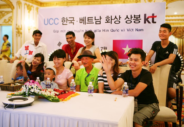 이 자리에 함께한 정윤모 KT 노동조합 위원장 겸 UCC 공동의장은 “UCC는 노사가 함께 참여하는 글로벌 봉사활동을 벌써 5년째 꾸준히 지속해 왔다” 며 “앞으로도 UCC회원사가 연대하여 꾸준한 노력과 지원을 계속하고, 사회공헌 영역도 지속적으로 확장해 나갈 계획이다”고 말했다.베트남 하노이에서 KT조사가 마련한 2016 베트남 글로벌 봉사활동에 선정된 현지 가족이 한국에 거주하는 베트남 결혼이주여성과 화상 상봉을 하며 즐거워하고 있다.<사진제공=KT>