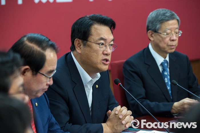 (서울=포커스뉴스) 정진석 새누리당 원내대표가 21일 오전 서울 여의도 새누리당사에서 열린 혁신비상대책위원회의에 참석해 모두발언 하고 있다.