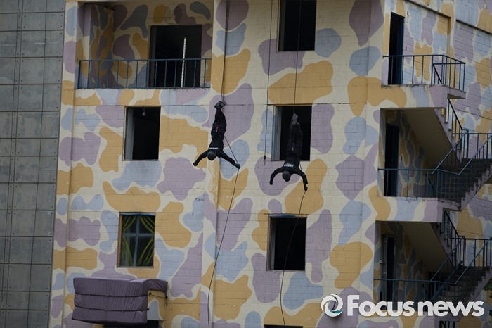(서울=포커스뉴스) 21일 오전 서울 서초구 경찰특공대에서 경찰 특공대원들이 대테러 훈련을 하고 있다.