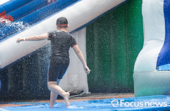 (서울=포커스뉴스) 21일 오후 서울 광진구 뚝섬 한강공원 수영장을 찾은 한 어린이가 물놀이를 즐기고 있다.