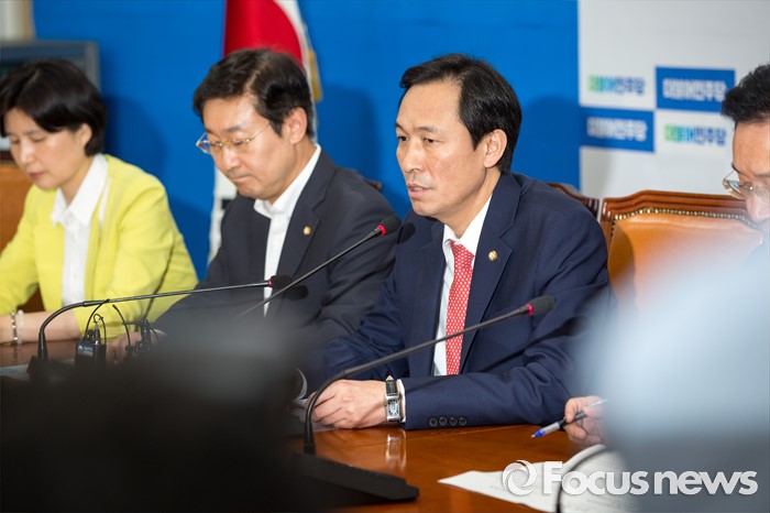 (서울=포커스뉴스) 우상호 더불어민주당 원내대표가 18일 오후 서울 여의도 국회에서 열린 '민주주의회복TF 검찰개혁 대책회의'에 참석해 모두발언 하고 있다.