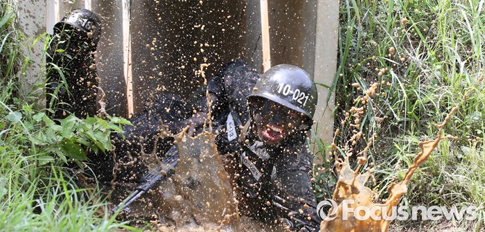(논산=포커스뉴스) 폭염경보가 발령된 21일 충남 논산 연무읍 육군훈련소 각개전투종합훈련장에서 26교육연대 3교육대 훈련병이 훈련을 받고 있다.