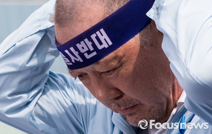 (서울=포커스뉴스) 21일 오후 서울역 광장에서 사드 배치 반대를 요구하는 김항곤 성주군수가 상경집회에 참가해 삭발식을 하고 있다.