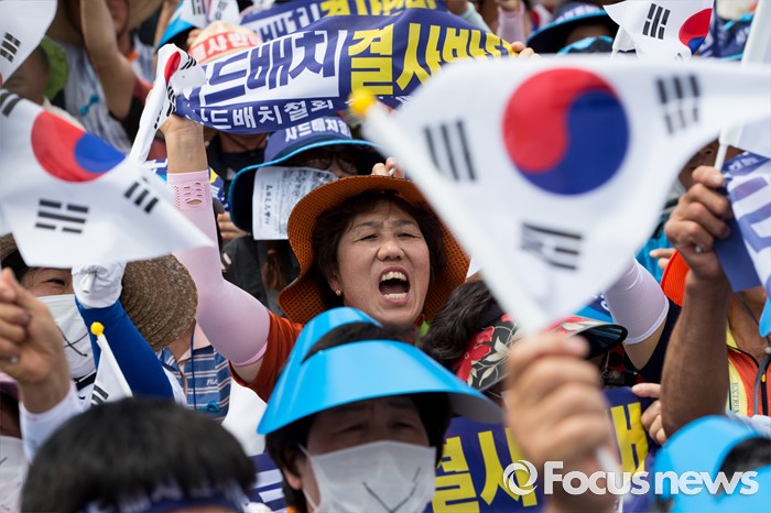 (서울=포커스뉴스) 21일 오후 서울역 광장에서 사드 배치 반대를 요구하는 경북 성주군민 2천여 명이 대규모 상경집회를 하고 있다.