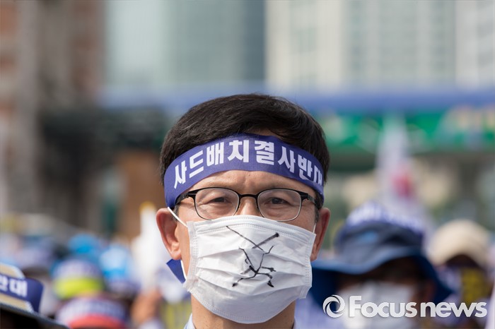 (서울=포커스뉴스) 21일 오후 서울역 광장에서 사드 배치 반대를 요구하는 경북 성주군민 2천여 명이 대규모 상경집회에 참가해 침묵시위를 하고 있다.