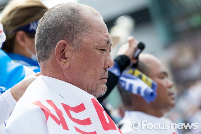 (서울=포커스뉴스) 21일 오후 서울역 광장에서 사드 배치 반대를 요구하는 김항곤 성주군수가 상경집회에 참가해 삭발식을 하고 있다.