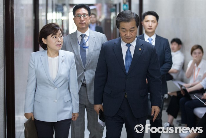 | △ 與 원내대표실 향하는 국방부 차관 |
