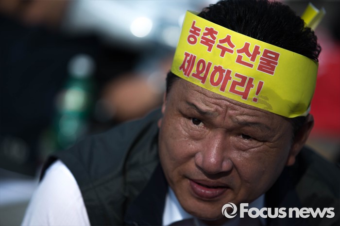 (서울=포커스뉴스) 21일 오후 서울 여의도 산업은행 본점 앞에서 농축산물의 김영란법 적용 제외를 요구하는 전국 농축산인 총궐기대회가 열리고 있다.