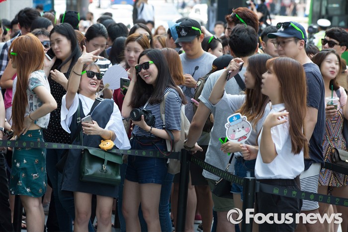 (서울=포커스뉴스) 22일 오전 서울 강남구 쉐이크쉑 국내 1호점 매장 앞에 시민들이 오픈을 앞두고 줄을 서고 있다.