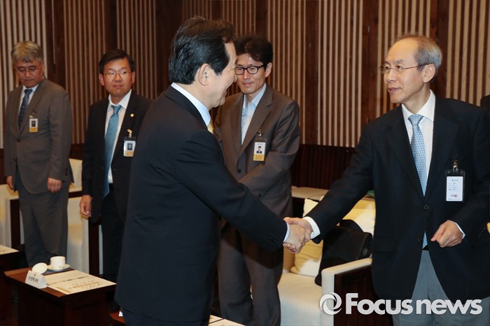 | △ 인사하는 정세균-윤성식 |