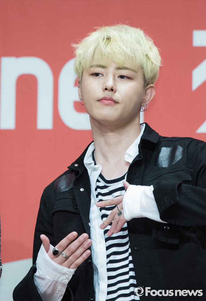 (서울=포커스뉴스) 22일 오후 서울 영등포구 63스퀘어에서 열린 Mnet '힛 더 스테이지' 제작발표회에 참석한 가수 유권이 포토타임을 갖고 있다,